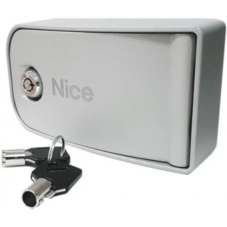blindino in alluminio completo di pulsante Nice KIOmini, ideale per il comando di cancelli automatici, porte garage e automazioni Nice compatibili.